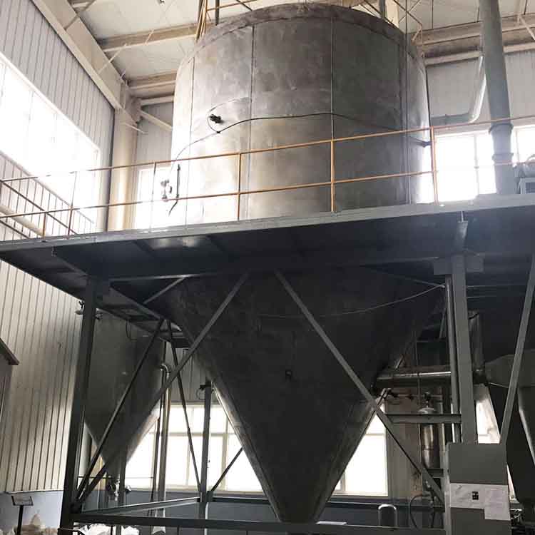 3、噴霧干燥機生產過程簡化,操作控制方便。對于濕含量40-60%(特殊物料可達90%)的液體能一次干燥成粉粒產品,干燥后不需粉碎和篩選,減少生產工序,提高產品純度。對產品粒徑、松密度、水份,在一定范圍內可通過改變操作條件進行調整,控制和管理都很方便。