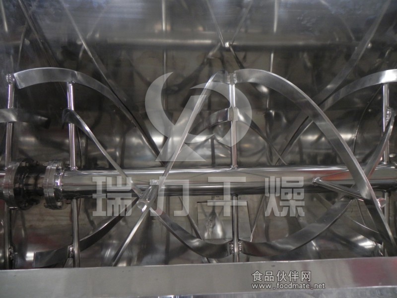 4、攪拌結(jié)構(gòu)中,正反旋轉(zhuǎn)螺條安裝于同一水平軸上,形成一個(gè)低動力高效的混合環(huán)境。