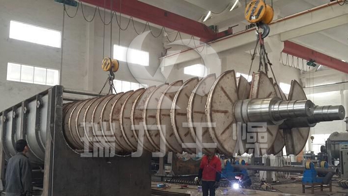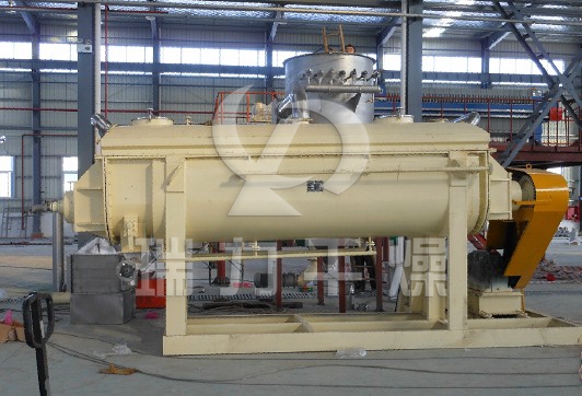 漿葉干燥機已成功地用于食品、化工、石化、染料、工業污泥等領域。設備傳熱、冷卻、攪拌的特性使之可以完成以下單元操作:燃燒(低溫)、冷卻、干燥(溶劑回收)加熱(融化)、反應和滅菌。攪拌漿葉同時又是傳熱面,使單位有效容積內傳熱面積增大,縮短了處理時間。楔型漿葉傳熱面又具有自清潔功能。壓縮--膨脹攪拌功能使物料混和均勻。物料沿軸向成'活塞流'運動,在軸向區間內,物料的溫度、濕度、混合度梯度很小。用導熱油做熱介質漿葉干燥機可完成低溫燃燒工作。如:二水硫酸鈣(Ca2SO4·2H2O) 燃燒轉化為半水硫酸鈣(Ca2SO4·1/22H2O)。碳酸氫鈉(NaHCO3)經煅燒轉化為純堿(Na2HCO3)等。通入冷卻介質,如水、冷卻鹽水等即可用來冷卻。如:使用于純堿行業的漿葉式涼堿機,取代老式的空氣冷卻涼堿機,節省了能源及尾氣處理設備,降低了操作費用。干燥,設備最主要的功能,不使用熱空氣,使溶劑回收、能源消耗、環境控制處于易處理的理想狀態。對需回收溶劑、易燃易氧化熱敏性物料尤為適應。已廣泛用于精細化工、石化、染料行業。軸向區間內,溫度、濕度、混合度的均勻性,使得設備可用來加熱或融化,或進行一些固體物料反應。在復合肥及變性淀粉行業均已成功使用。漿葉干燥機可用來對食物和面粉進行滅菌處理。單位有效容積內大的加熱面積,很快就將物料加熱到滅菌溫度,避免了長時間加熱而改變物料品質。