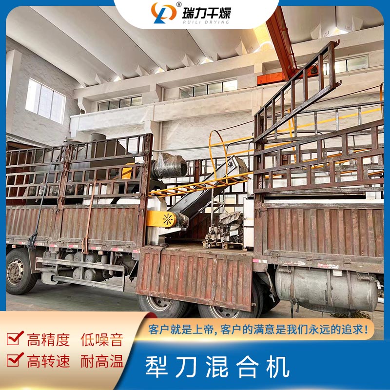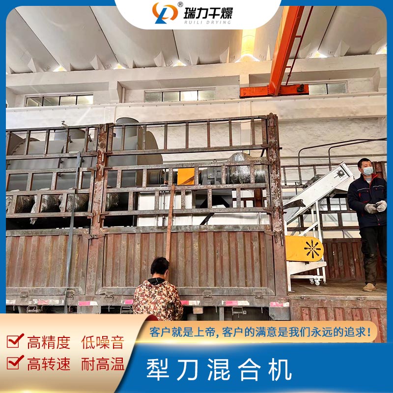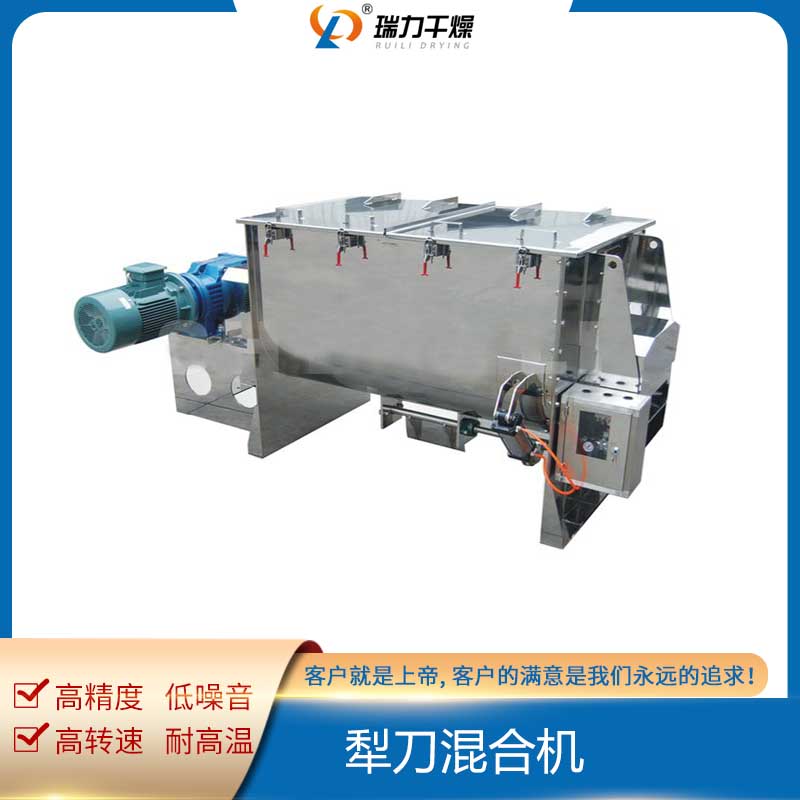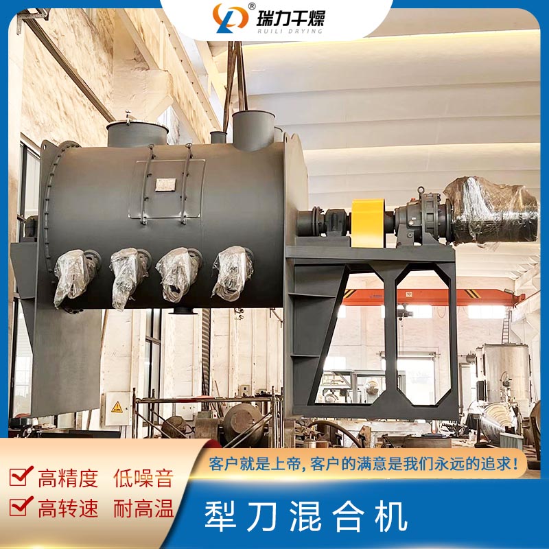 犁刀混合機設備結構主要由傳動部分、臥式筒體、犁刀組軸、飛刀組、出料閥、噴液裝置等組成,臥式筒體內的犁刀隨主軸旋轉使物料沿筒臂作徑向圓周湍動,同時徑向物料沿線流經飛刀組,被高速旋轉的飛刀拋散,不斷更迭、復合,使物料在短的時間達到混合均勻;傳動部分包括帶電機擺線針輪減速機、聯軸器,主要把電機的運動變為需要的速度和扭矩傳給復雜刀軸。