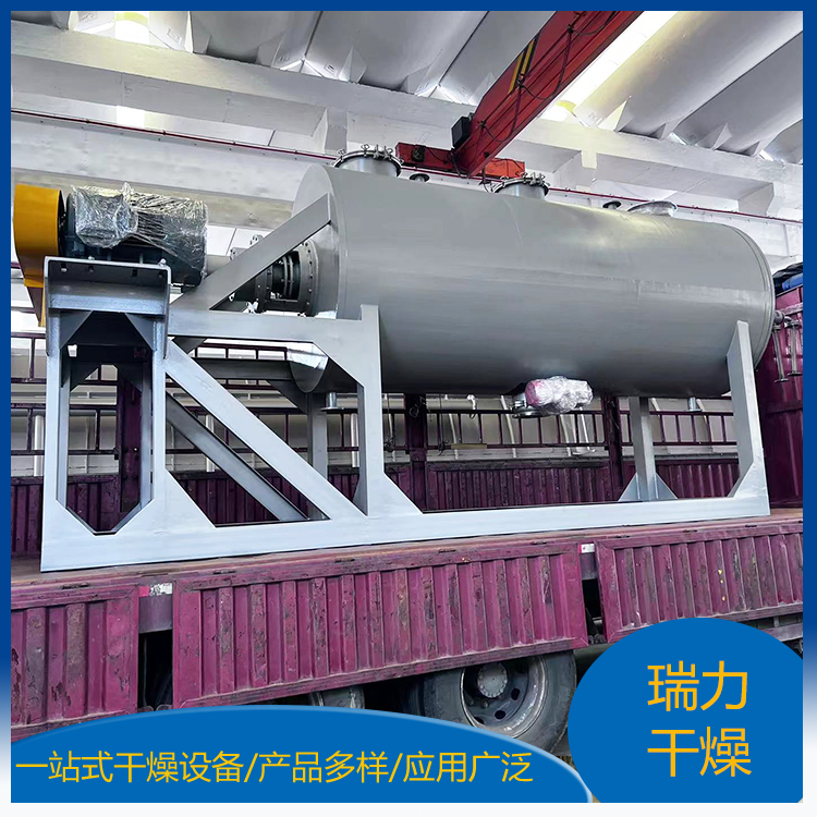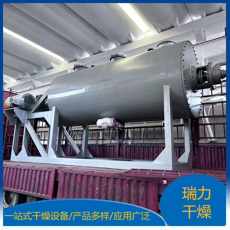 干燥設備在干燥機臥式筒體內,裝有攪拌軸及攪拌葉。筒體夾套、攪拌軸及攪拌葉均可通入加熱介質,在攪拌作用下,物料在筒體內充分混合與換熱,溶劑蒸汽通過殼體上抽真空口排出,經過袋式過濾器過濾夾帶粉塵,進入冷凝器冷凝回收。達到干燥要求后停機, 將物料從筒體下部卸料口排出,再進行下一批料的操作。間歇操作、圓形筒體及動、靜密封點的精密加工,使該設備能達到*的真空度。視物料性質,筒體內壁、攪拌軸等可進行鏡面拋光處理。